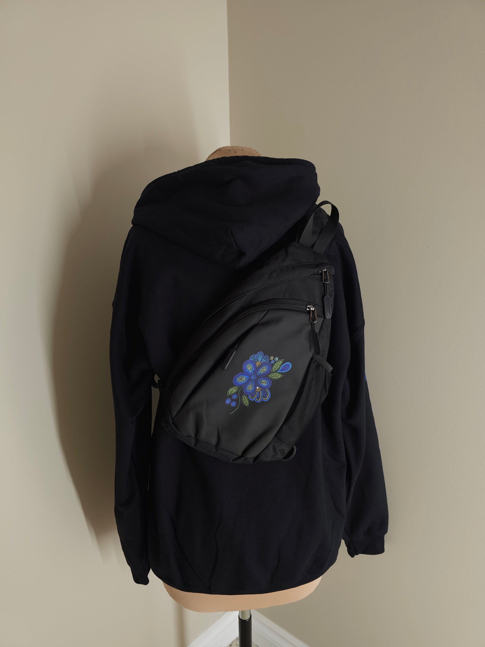 Carry your essentials in style with the Northern Bloom Sling Bag. Featuring a bold blue floral beadwork print on a sleek black sling, this bag is lightweight, functional, and perfect for everyday use. Multiple pockets keep everything organized while the crossbody design makes it easy to grab and go. A beautiful blend of practicality and culture.